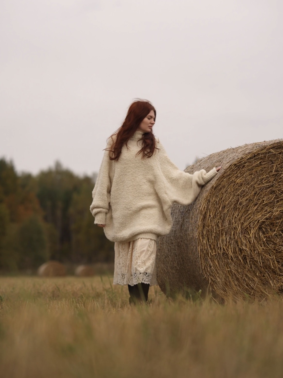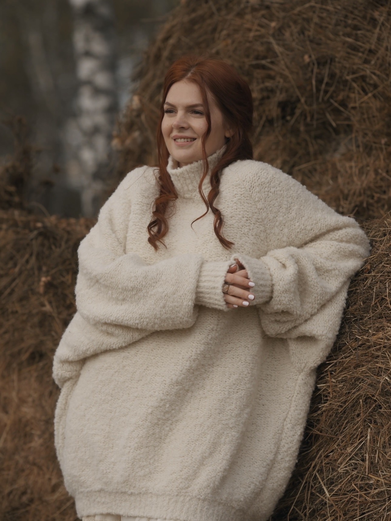 Свитер «Летучая мышка». Цвет: молочный. Рекомендации по стирке и сушке: ручной или деликатный режим стиральной машины при температуре не выше 30°C, с использованием специальных жидких средств для шерсти. Не замачивайте надолго, не отжимайте выкручиванием и не используйте отбеливатели. Сушите в горизонтальном положении на ровной поверхности, аккуратно расправив, вдали от прямых солнечных лучей и источников тепла, чтобы избежать деформации.