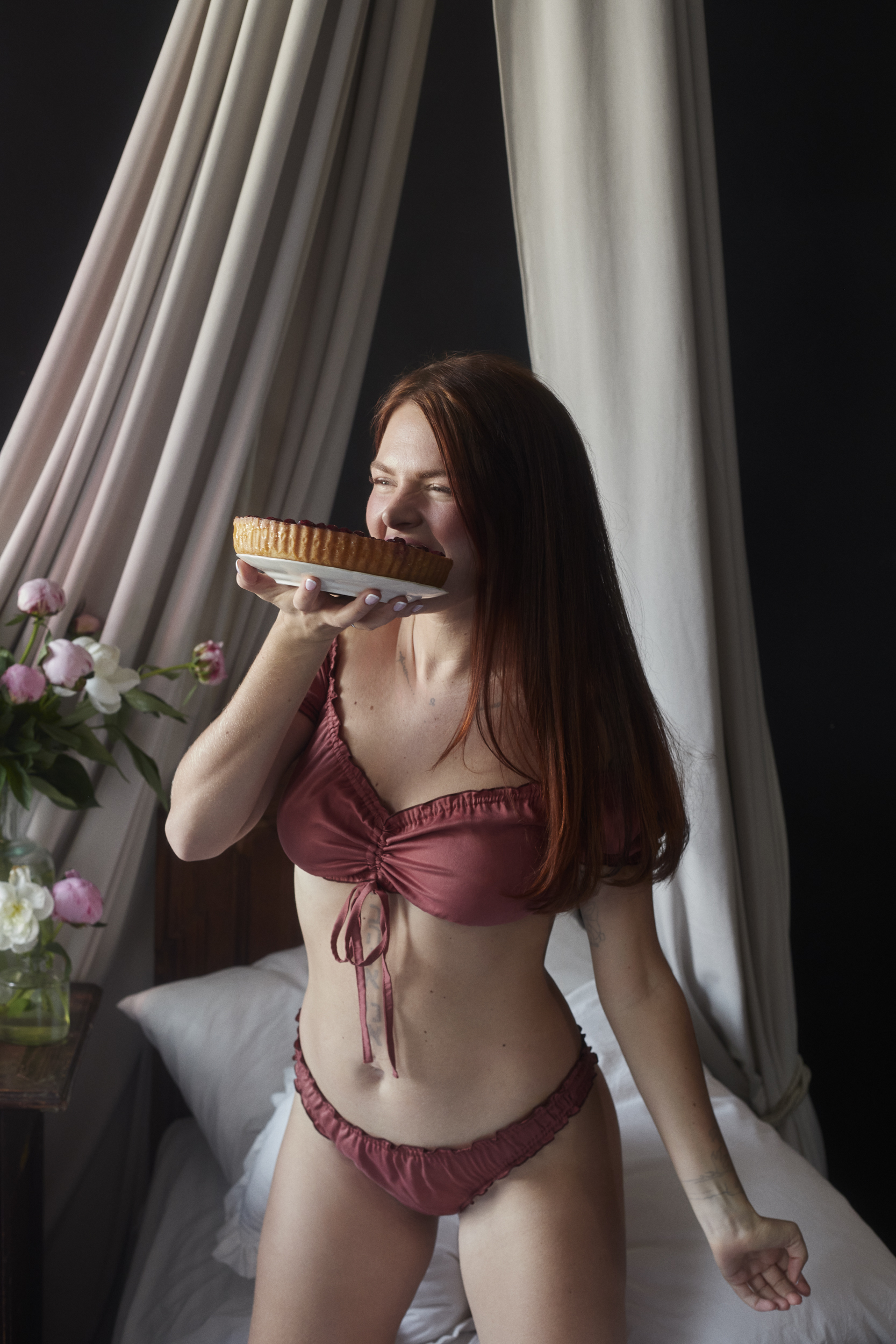 Комплект белья «Мадлен» в винном цвете из натурального Балийского шелка.