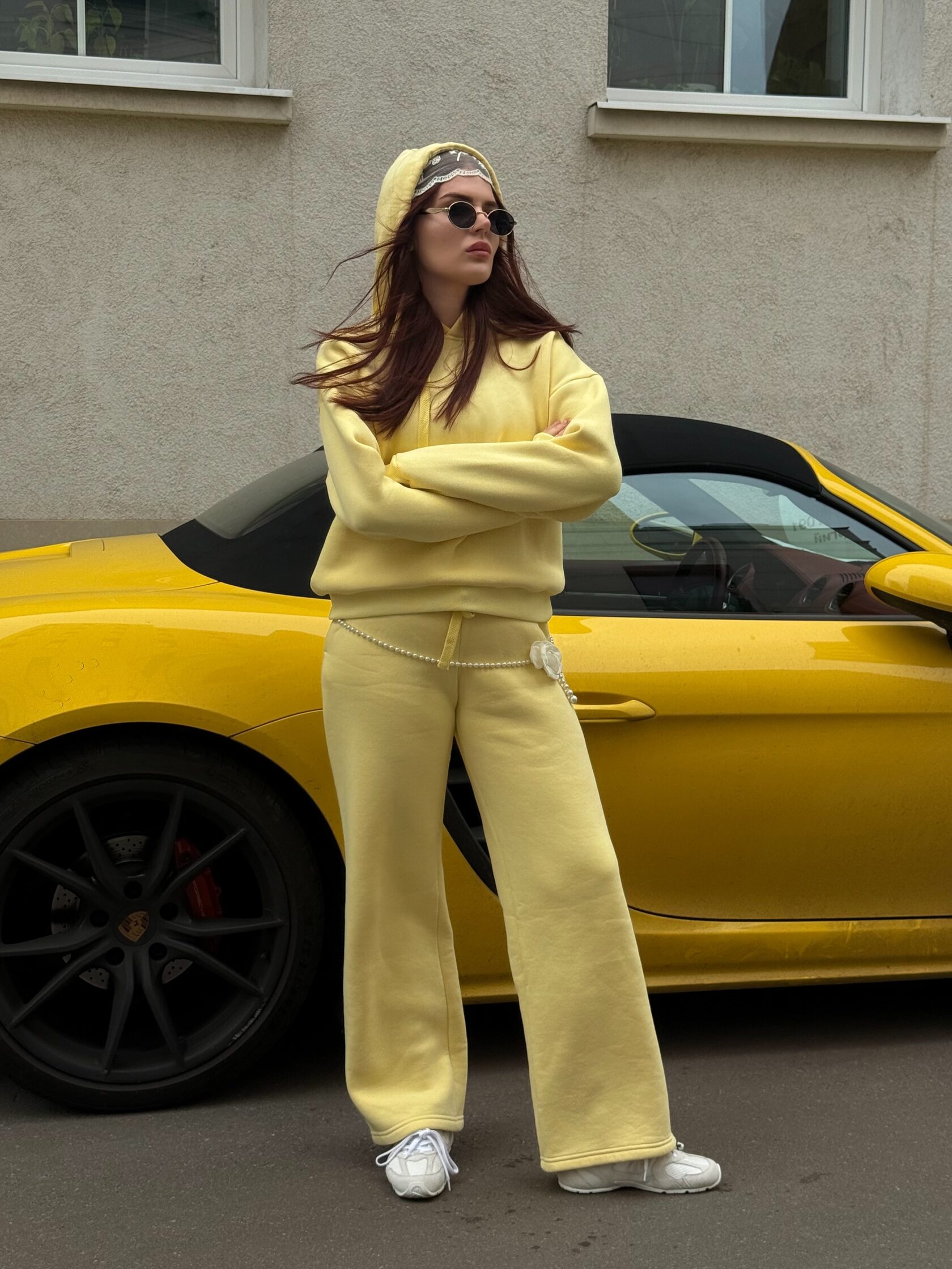 Костюм «Комфорт». Цвет: желтый. Производство ткани: Россия и Турция. Трехниточный футер – плотный, с начесом по изнанке. Ткань хорошо растяжимая, прочная и износостойкая. Рекомендации по стирке и сушке изделия: стирка в обычном режиме с температурой строго не выше 30°с. Не отбеливать. Разрешено гладить при температуре не более 150°с.